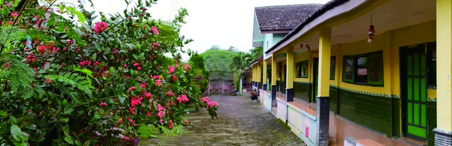 Suasana Ruang Kelas 1, 2 dan 3 terdapat sebagian taman sederhana di depannya.