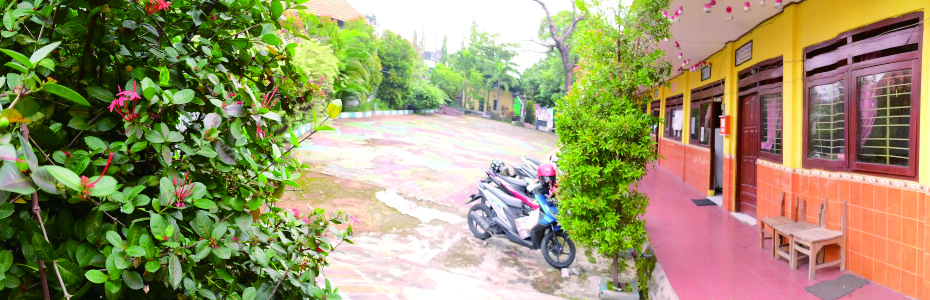 Suasana didepan kelas 4, 5 dan 6 tempat berolahraga dan senam sehat saat pagi hari.